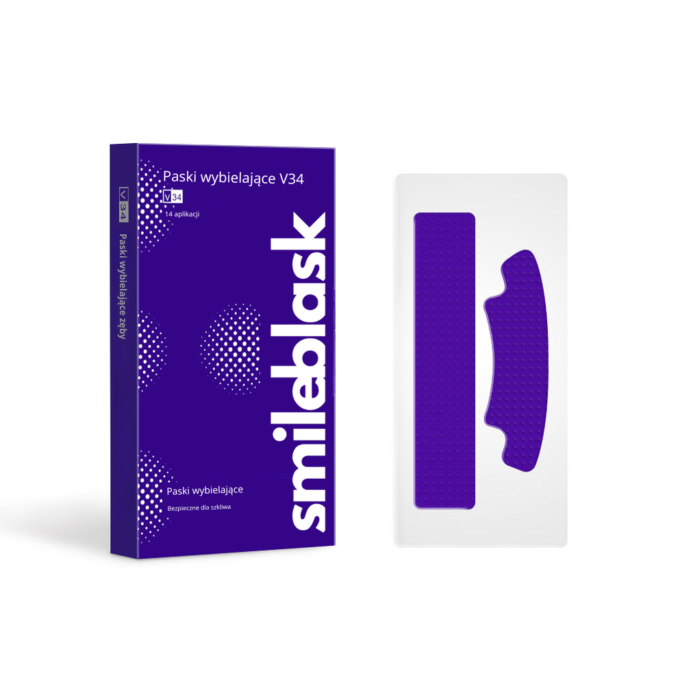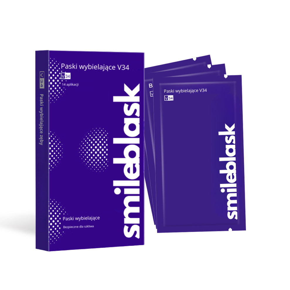 Zestaw SmileBlask V34 to bezpieczna i skuteczna kuracja wybielająca zaplanowana na 14 dni. Innowacyjna formuła PAP+ działa łagodnie na szkliwo, eliminując przebarwienia bez bólu i nadwrażliwości. Każde opakowanie zawiera paski na pełną kurację – idealną do stosowania w domu.